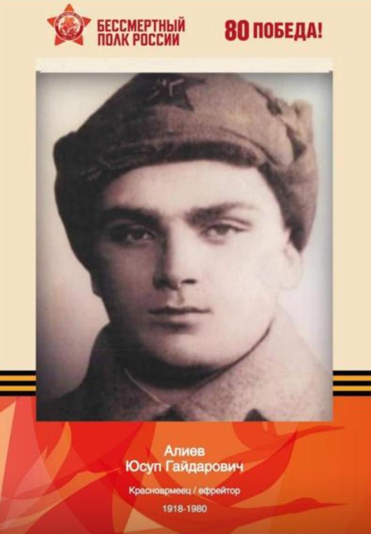 Алиев Юсуп Гайдарович родился 15 августа 1918 года в селе Янги-Юрт Бабаюртовского района Дагестанской АССР.