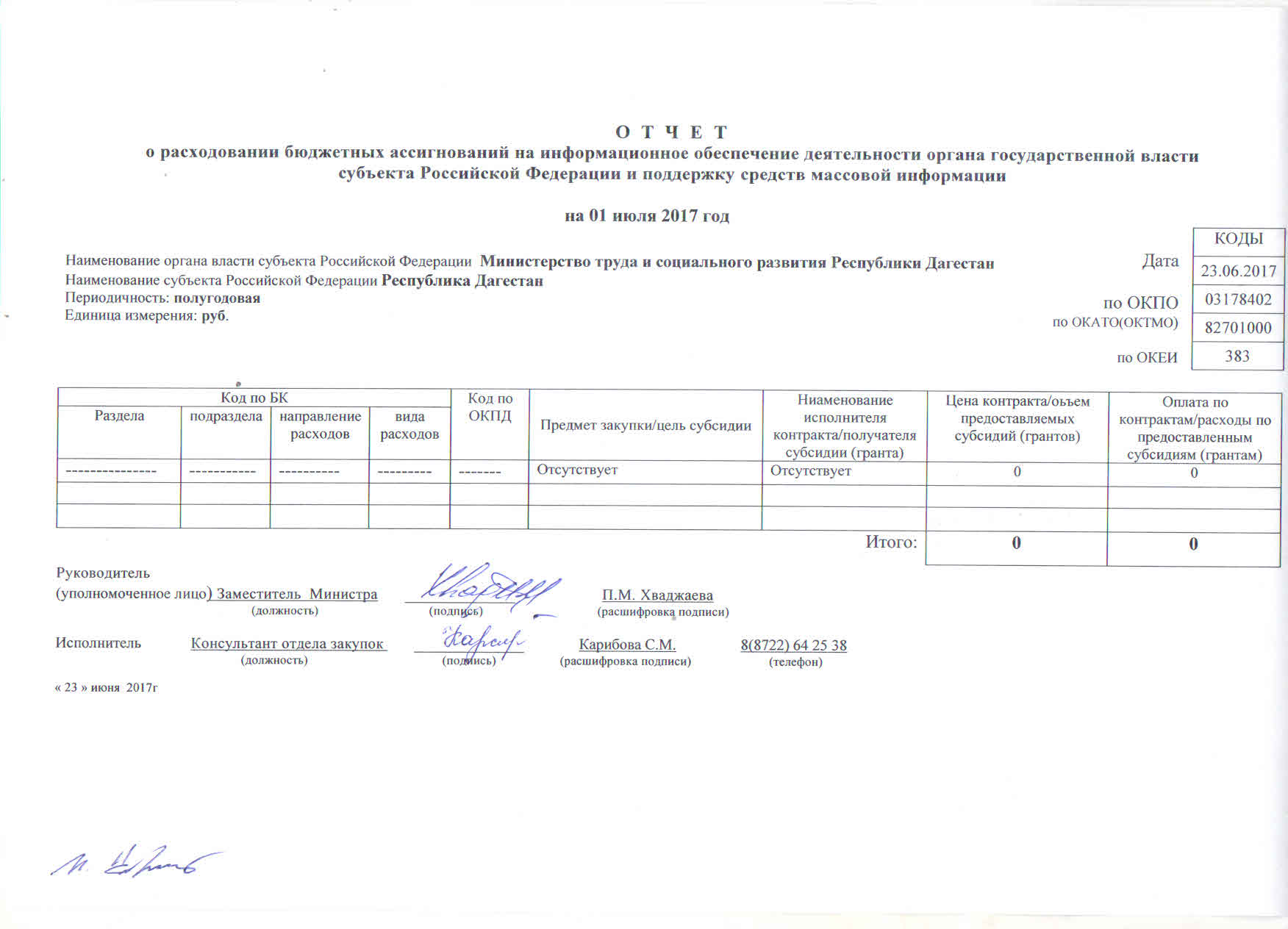 Отчет о расходовании бюджетных ассингнований на информационное обеспечение деятельности органа государственной власти субъекта РФ и поддержку СМИ