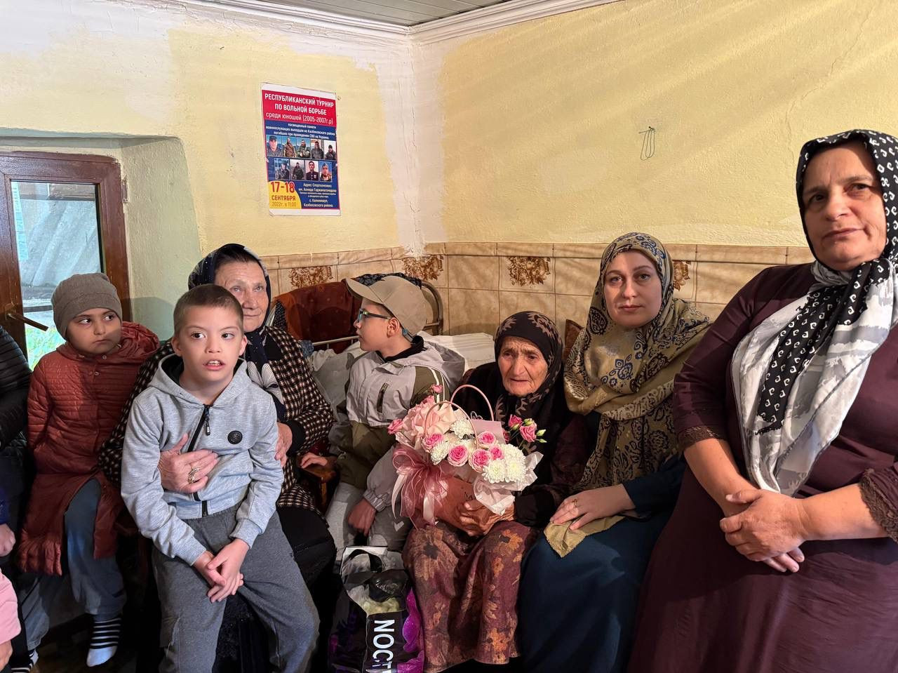 Сегодня, в самый добрый и светлый день, в Международный День пожилых людей, работники Реабилитационного центра вместе с детьми посетили 87-летнюю мать-героиню, Ветерана труда, Изажу Абужанатову. Она является матерью и бабушкой погибших на Украине в СВО Айгупа Абужанатова и Имам- Паши Абужанатова, геройски погибших, защищая мир и покой нашей Родины. Внук, участник СВО, Абужанатов Зулумхан награжден орденом Мужества.