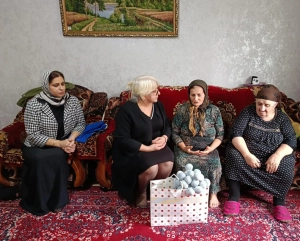 Заведующая отделом и специалист отдела вручили памятные подарки матерям погибших участников специальной военной операции и родителям тех, кто сейчас находится в горячей точке.