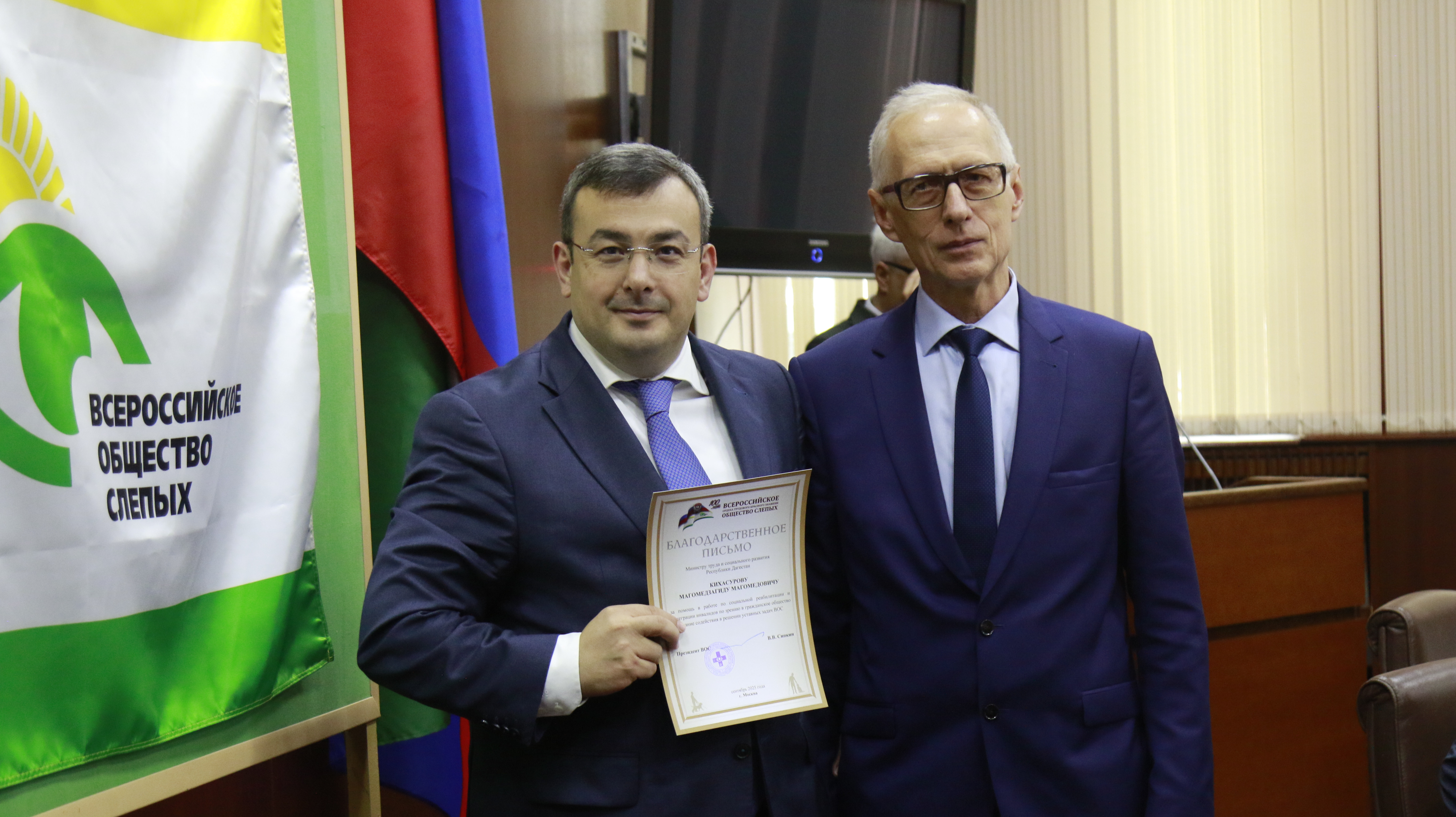 От Всероссийского общества слепых также были вручены награды представителям органов исполнительной власти, общественных и благотворительных организаций за их вклад в социальную реабилитацию и интеграцию инвалидов по зрению в общество, а также за помощь в решении задач, стоящих перед ВОС.