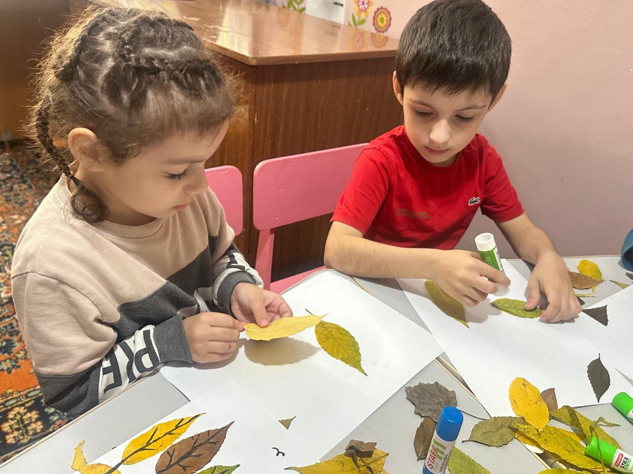 Закрепить навыки подбора и наклеивания сухих листьев в определенном порядке;