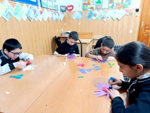 ⚪ Инструктор по труду, Саладинова Зарема Айдамировна, с подопечными детьми отделения временного пребывания детей и семей с детьми, Центра социального обслуживания населения Кайтагского района, провела мастер-класс по изготовлению открыток с использованием различных материалов.