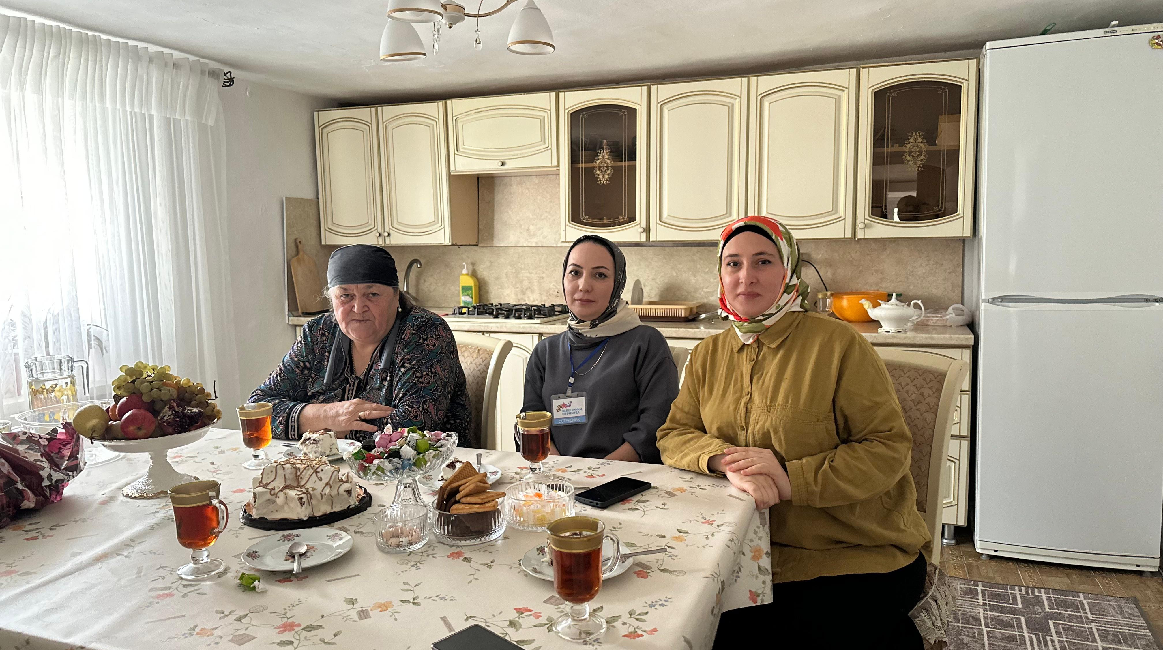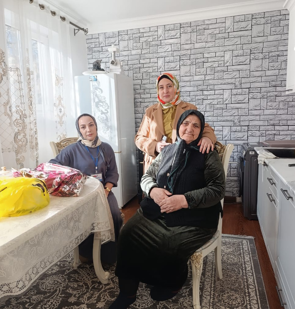 Заведующая комплексного центра социального обслуживания населения Гаджиева З.И. специалист Ахмедханова Д. совместно с социальными координаторами фонда защитника отечества поздравили на дому матерей погибших военнослужащих, которые участвовали в специальной военной операции.