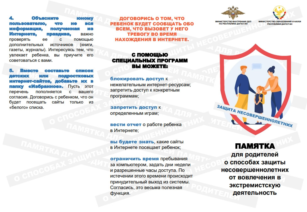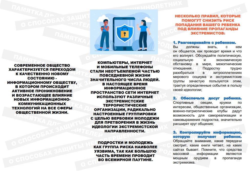 -памятка для родителей о способах защиты несовершеннолетнихот вовлечения в экстремистскую деятельность;