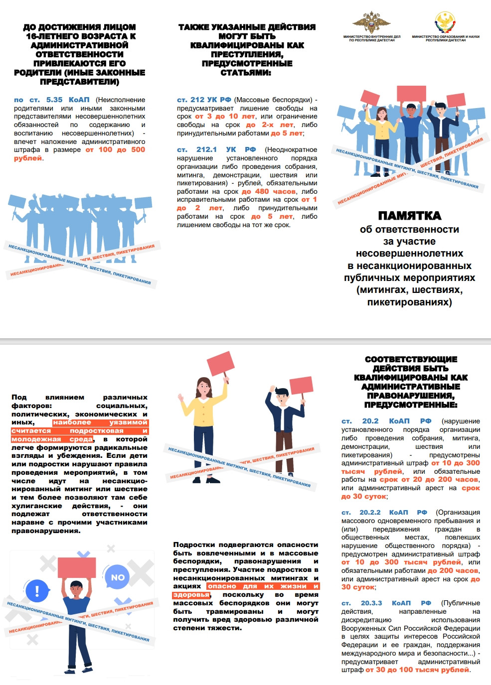 -памятка об ответственности за участие несовершеннолетнихв несанкционированных публичных мероприятиях (митингах, шествиях, пикетированиях);