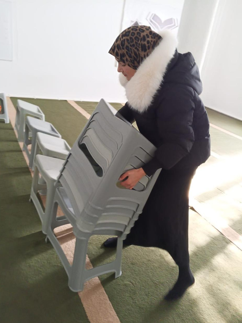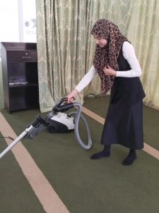 Добровольцы - девочки провели уборку помещения, помыли окна, протерли пыль, убрались на полках. Руководство мечети поблагодарила за проявленную помощь.