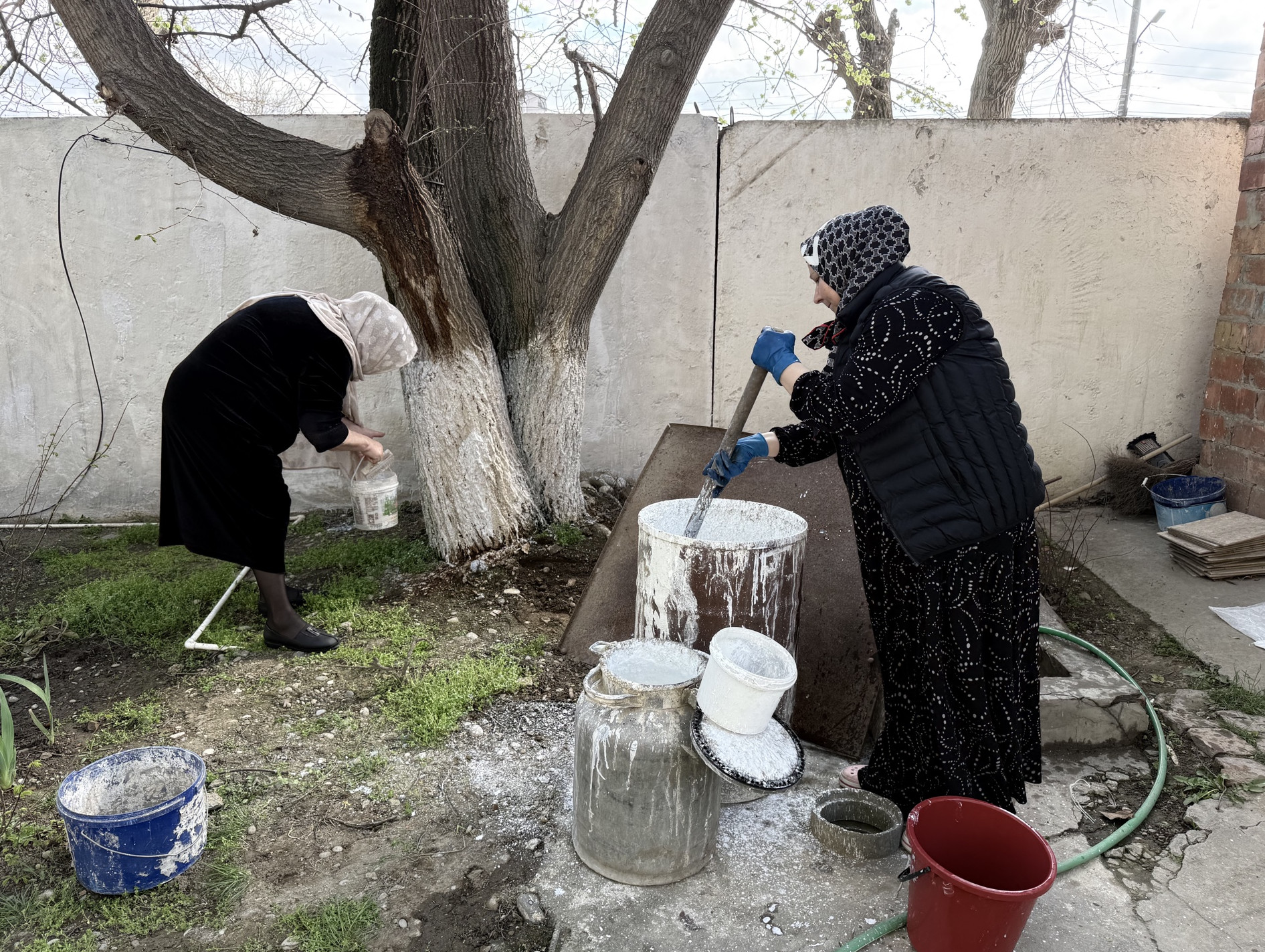 Навели порядок,побелили бордюры,стены здания,очистили от мусора прилегающую территорию.