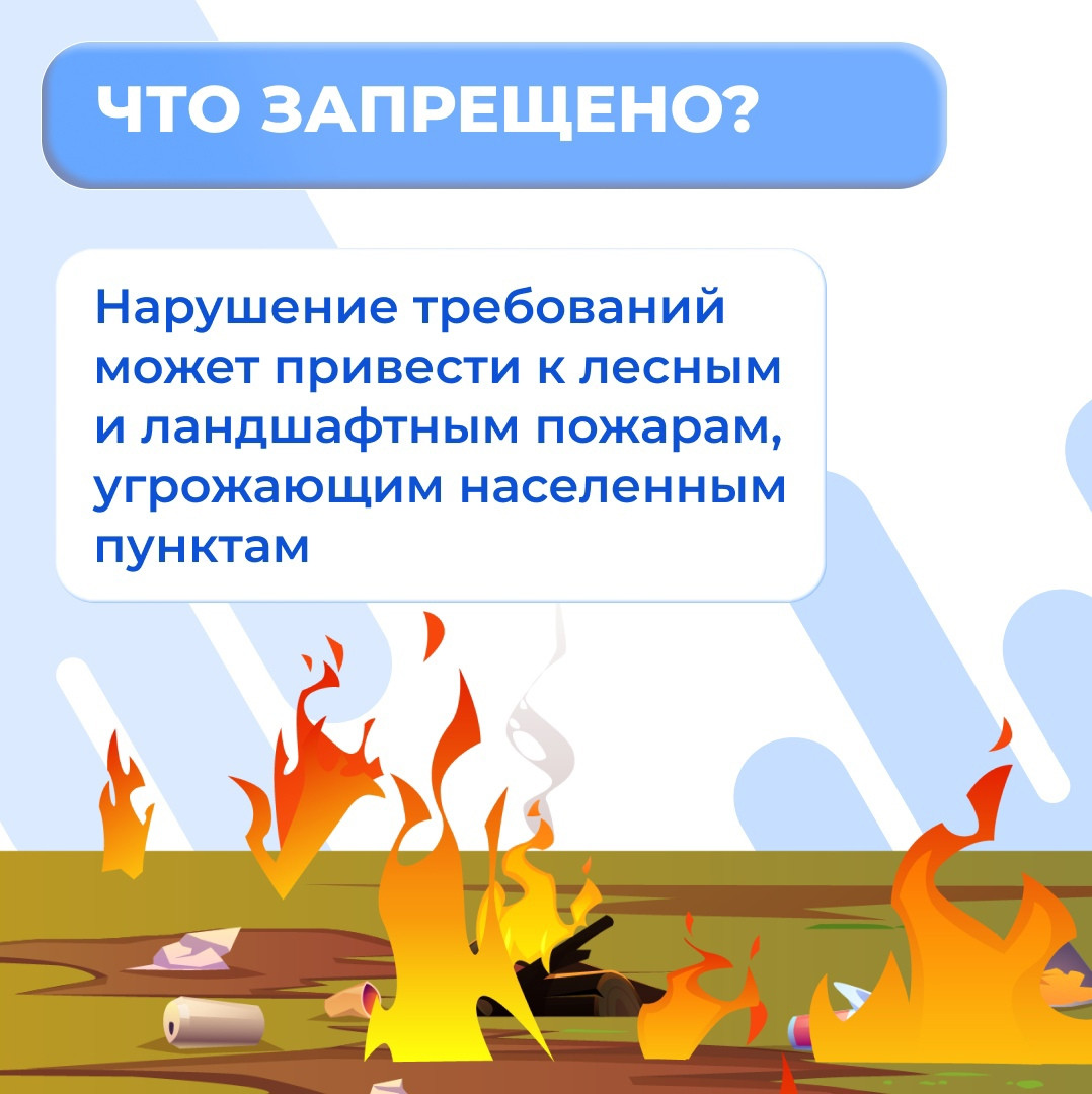 - запрещены костры, сжигание мусора, выжигание травы- ограничены пожароопасные работы Штрафы: