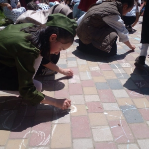 звучала веселая музыка, которая созывала детвору и взрослых на праздник. Гостей праздника ждала насыщенная программа: концертные выступления, игры, конкурсы, множество интересных развлечений и активностей. На площади ребята с помощью цветных мелков рисовали на асфальте, читали стихи и пели песни.